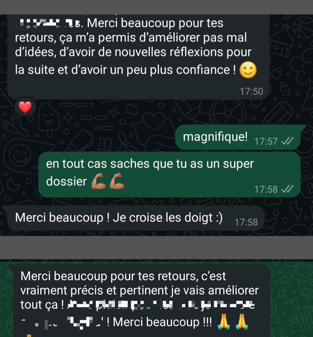 Une bonne candidature de master, c’est plus qu’un bon CV. C’est un dossier cohérent, une lettre claire, un projet qui tient la route.Je t’aide à faire le lien entre ton parcours et ton projet, à structurer tes candidatures et à valoriser ce qui te rend unique.